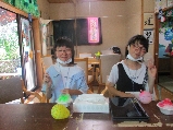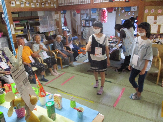 憩の家みちの夏祭り。これは、勝小の2人の天使をお招きして、お年寄りと一緒に楽しんじゃおうという企画。初めてスタッフが考えて実践してくれました。