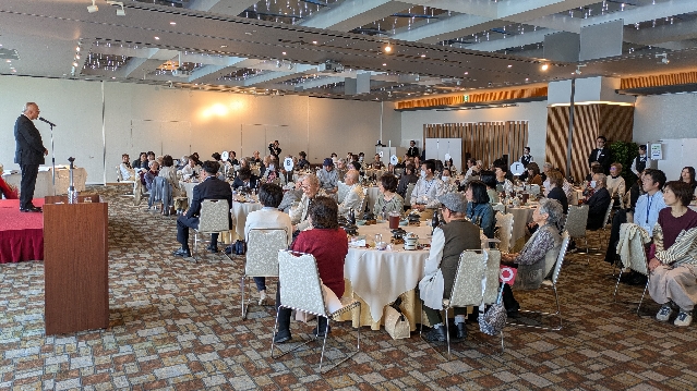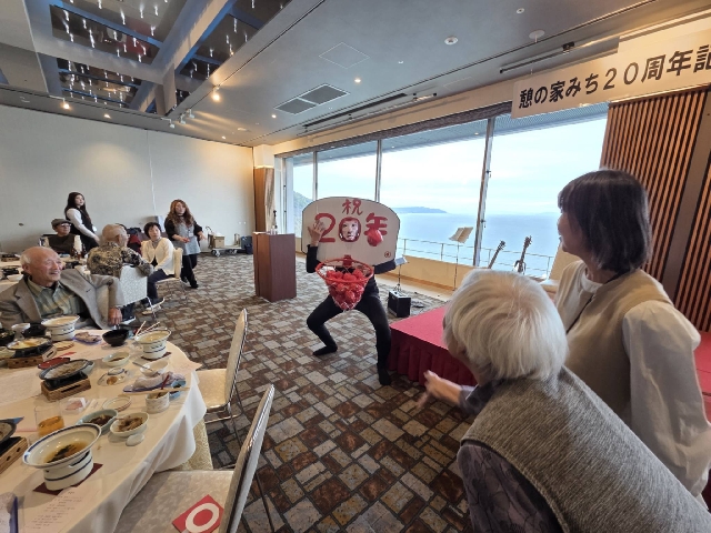 4月15日(水)焼津松風閣にて、憩の家みち20周年記念昼食会が行われ、総勢87名の参加がありました。当日は98歳、97歳の方を中心に「長幼の序」というテーマで楽しく会食が出来ました。
